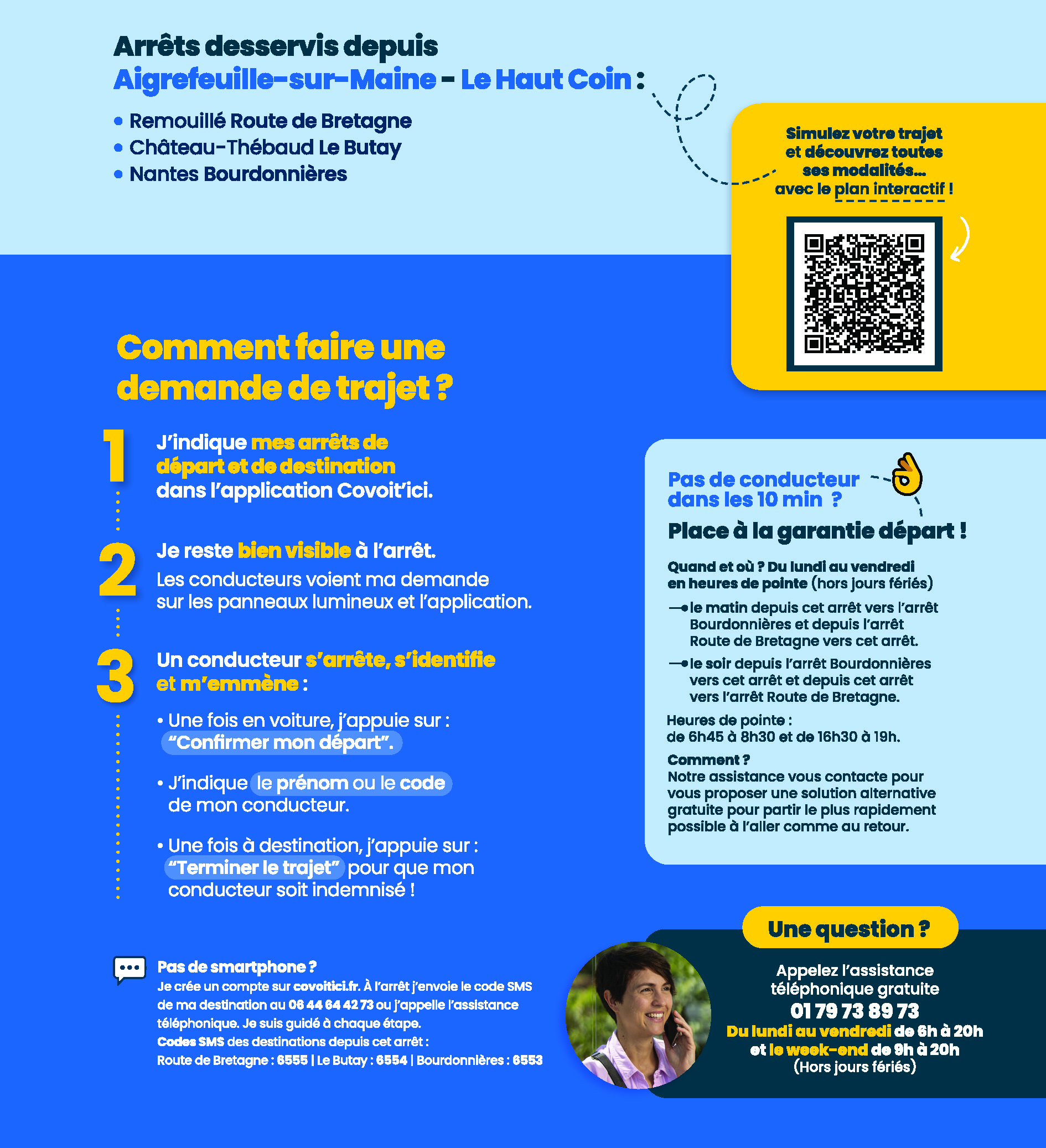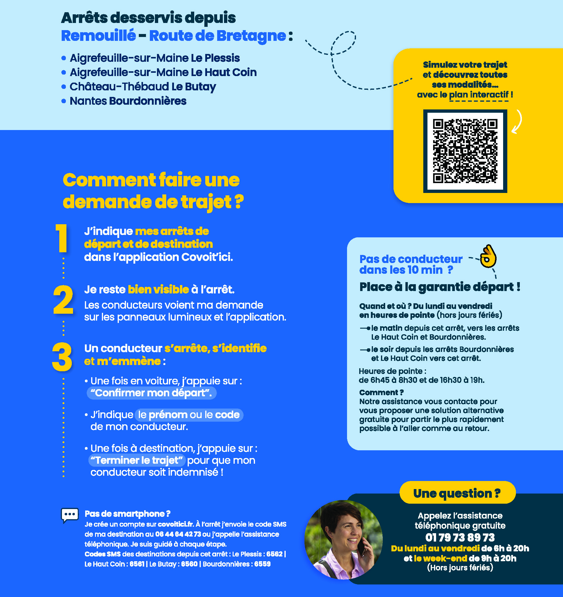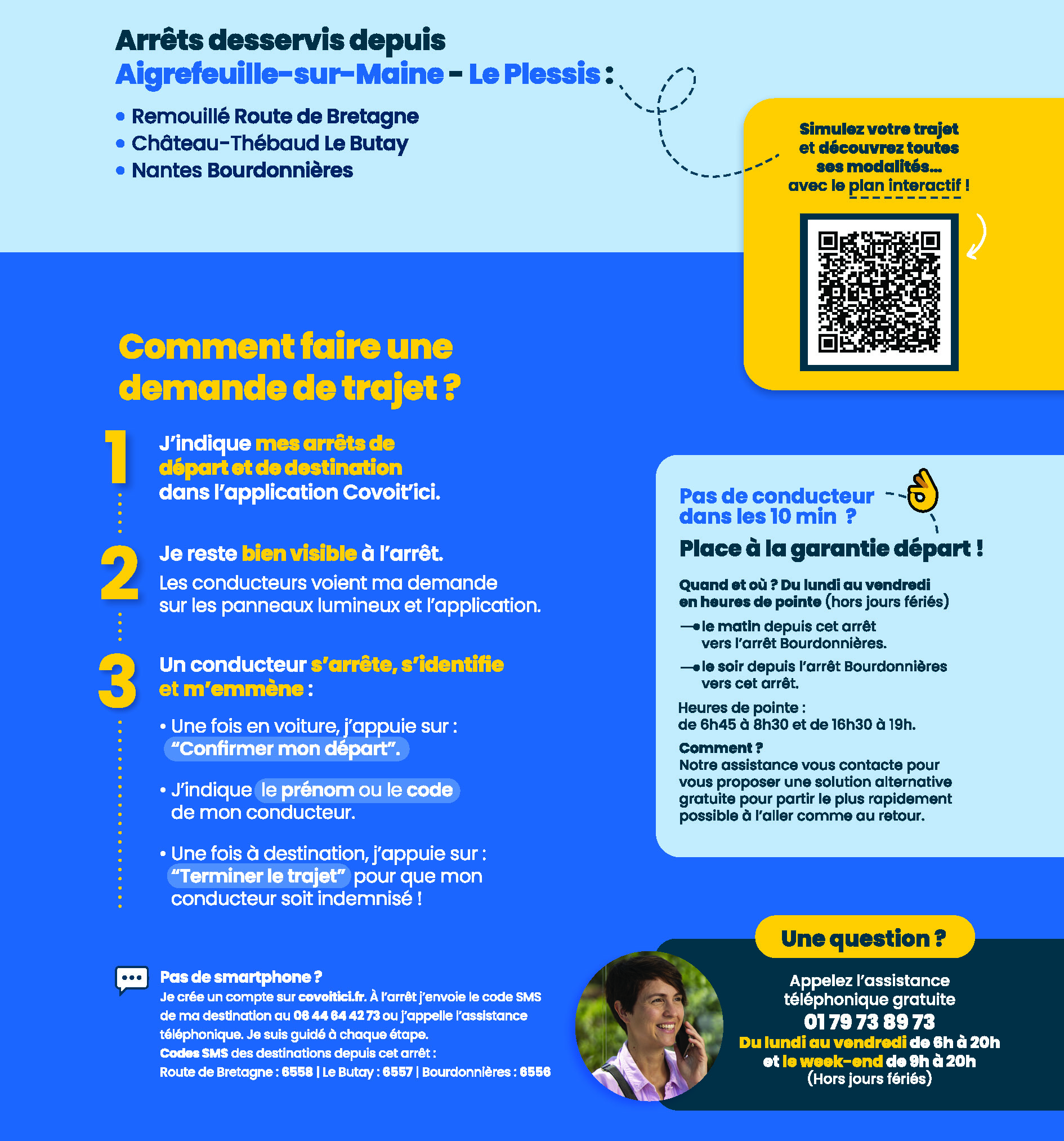 Afin de vous assurez de bénéficier cette garantie, indiquez votre arrêt de départ et d’arrivée ainsi que l’horaire souhaité sur l’application, pour vérifier que votre trajet est éligible.